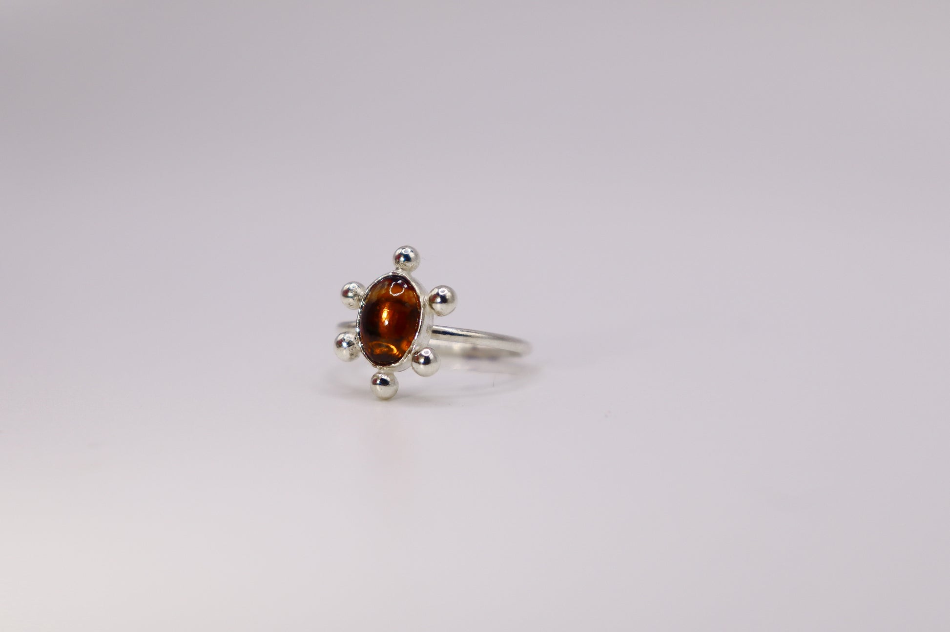 My signature bubble ring featuring a dark amber colored golden zircon cabochon set in sterling silver